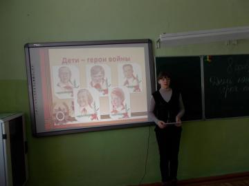 8февраля классный руководитель 8д класса Кулушова Г.И. провела тематический классный час посвященный детям - героям войны.