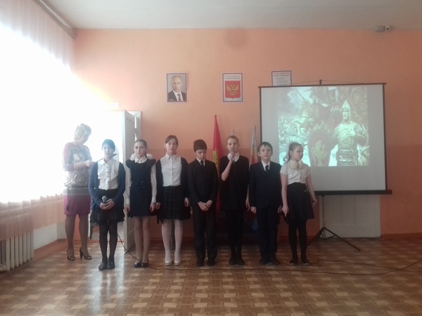 В рамках  конкурса "Самый классный классный" Панова Л.М. провела открытое внеклассное мероприятие "Мой до м - Россия". Ребята читали стихотворения, пели песни, инсценировали отрывки произведений о защитниках родины от Руси до современности.