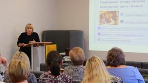 Вторая часть семинара была посвящена теме «Русский язык как неродной». Перед участниками семинара выступили учителя Стегаловской школы и его филиала в с.Стрелец. О компетентностном подходе в обучении русскому языку детей-билингвов в новых реалиях российской школы рассказала Т.П.Григорьева. С технологиями и методическими приёмами обучения русскому языку в полиэтнических классах присутствующих познакомила О.В.Семёнова. Учитель русского языка и литературы Л.Н. Сорокина рассказала об обучении русскому языку как неродному. Кандидат филологических наук, заведующий кафедрой гуманитарного и эстетического образования Института развития образования Н.В. Углова подробно остановилась на теме «Достижение предметных и метапредметных результатов обучающимися, изучающих русский язык как неродной».