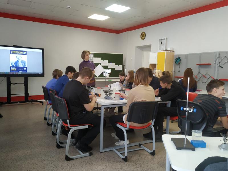 Сегодня в ЦО «Точка роста» лицея состоялась Всероссийская лабораторная работа «Универсалиум», посвященная 310-летнему юбилею Михаила Васильевича Ломоносова.Цикл лабораторных работ по физике, русскому языку, биологии и химии разработан ФГАОУ ДПО «Академия Минпросвещения России».